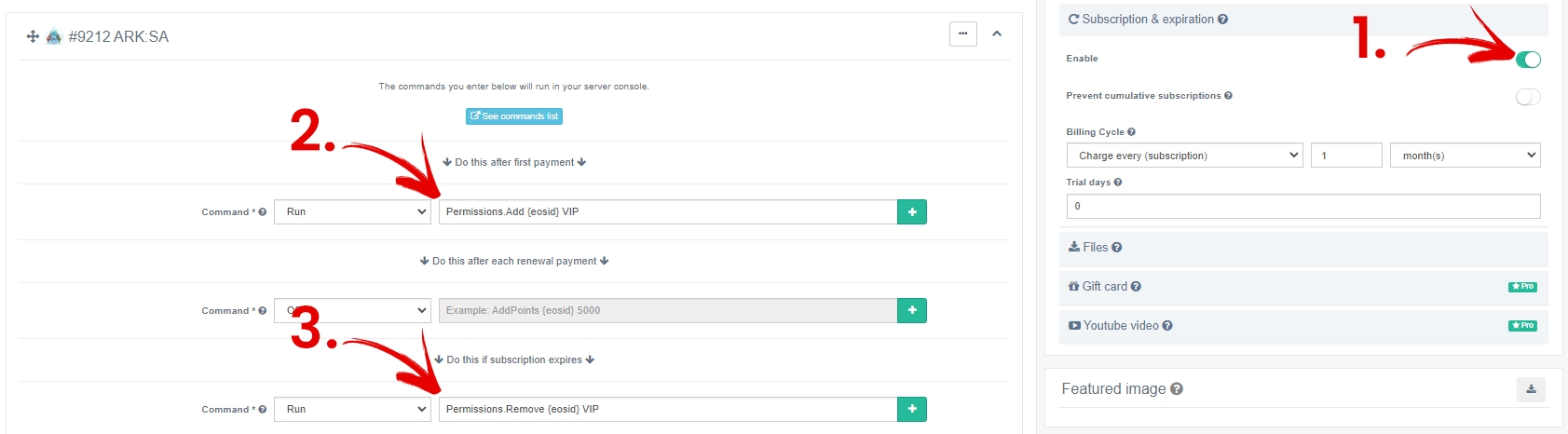 All commands are configured via the product editor in your Tip4Serv dashboard.