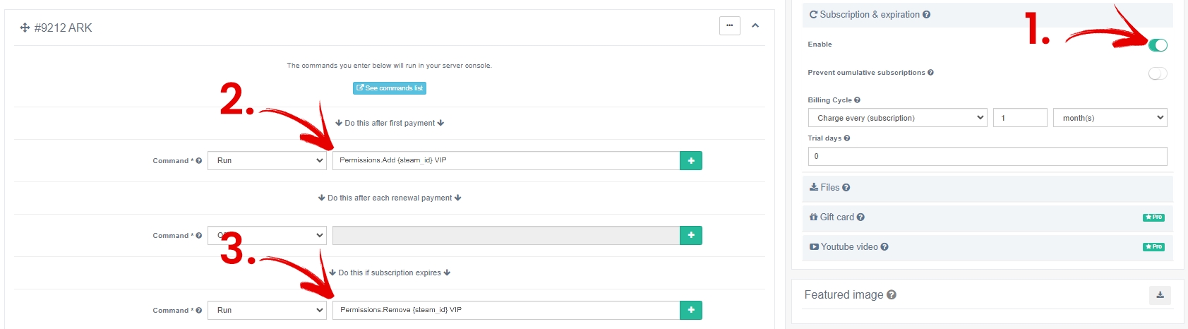 4. Set the end command (Do this if subscription expires)